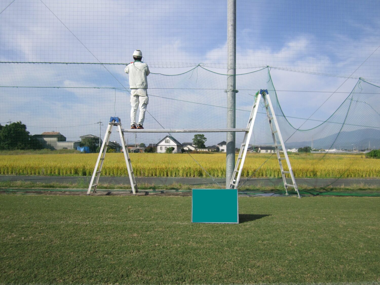先日、佐賀市某所にて防球ネットの張替工事を行いました。 学校の運動場(グラウンド)をはじめ 野球グラウンド、サ...