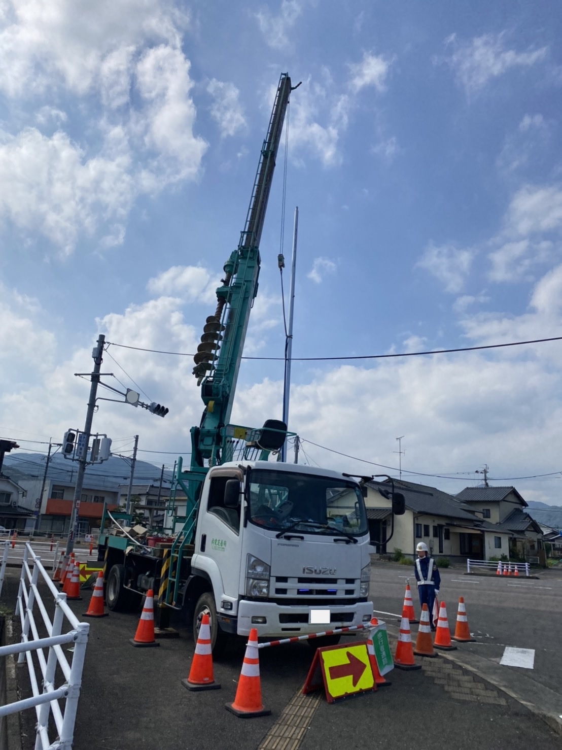 佐賀県某所にて 道路照明灯の基礎工事しました。 穴掘り建柱車(建柱工...