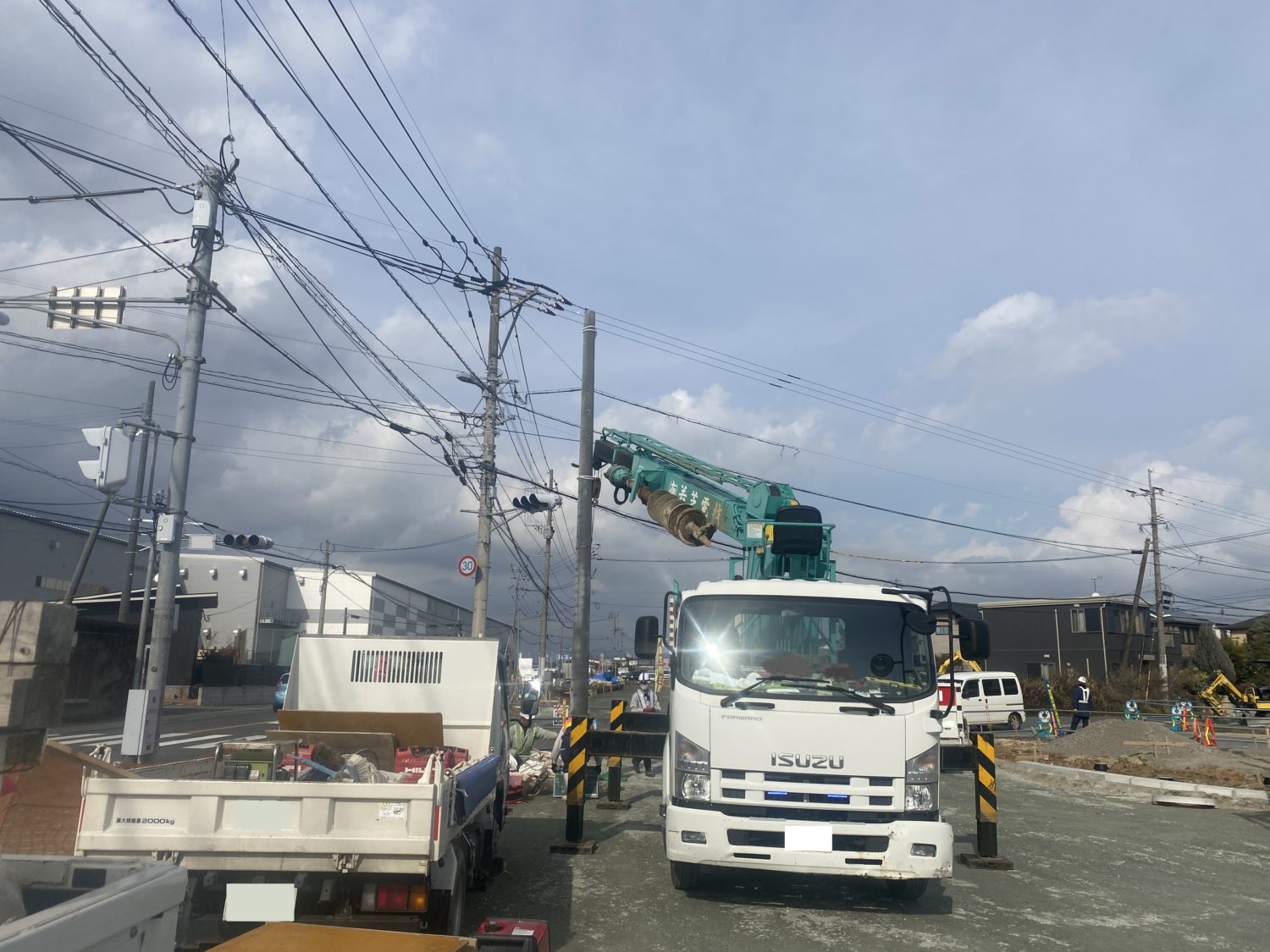 道路照明灯撤去・新設工事を行いました。 道路の照明灯の他、消防格納庫の乾燥柱や信号柱など建柱工事...