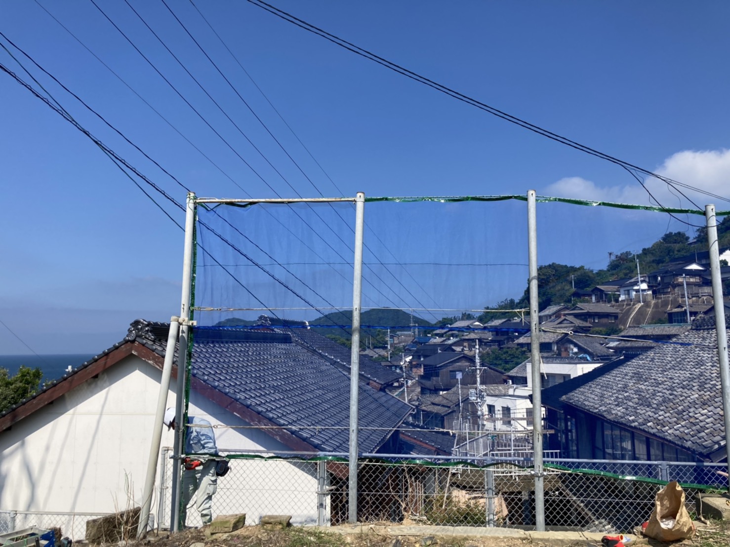 防風ネット工事ご依頼頂きました。 場所は、佐賀県の某島です。 景色が良く、波音に癒されながら、作業してきました。 次回は、プライベートで訪れたいです 🙂 野球やゴルフ、サッカー等のボール用の防球ネットの他に弓道の防矢や今回のように防風ネットも取り扱いありますので、お気軽にお問い合わせください。