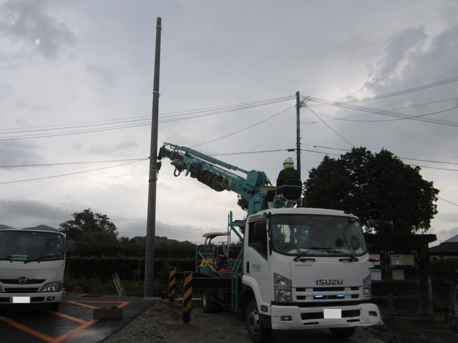 佐賀県某所にてコンクリート柱の建柱工事、承りました。 佐賀・長崎・福岡・大分・熊本の建柱工事、行っております。 穴掘り建柱車、オーガー(φ300~φ1,000)を所有しており、臨機応変な施工いたします。 照明柱・消防格納庫の乾燥柱等もお任せください。 各種コンクリート柱の販売もしておりますので、お気軽にお問い合わせください。